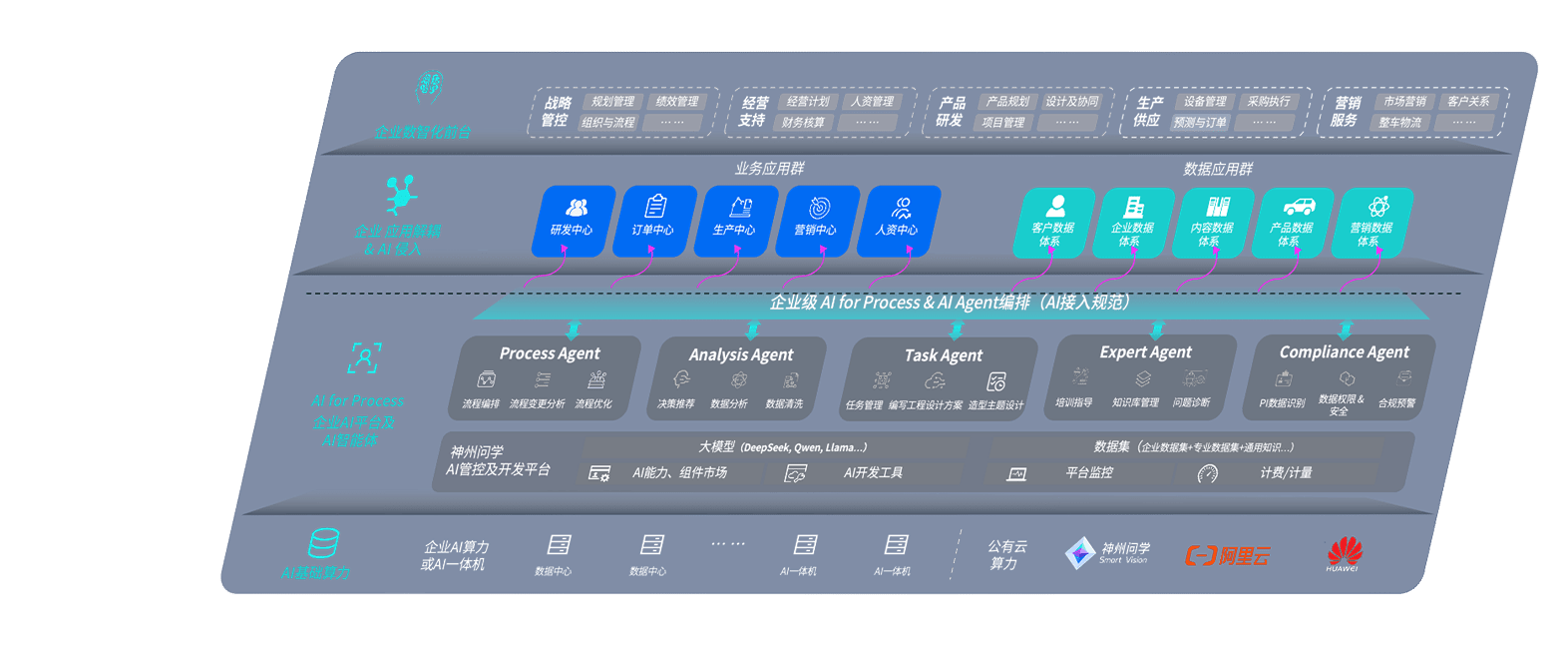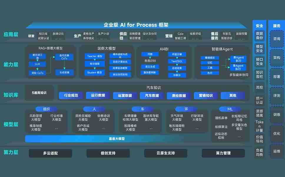 端到端的一站式AI工作空间深度融合了从企业战略规划到日常经营的全流程业务板块,,,定向解决车企内部领域多、、、部门多、、链条长、、、场景碎片化等难题,,,,支持车企快速构建以AI为核心的生产力写作体系,,,,实现任务执行与AI能力的无缝集成与交互